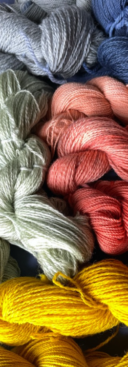 a sustainable colour project exploring domesticity, cottage industry, and circular making processes. all samples use 100% merino wool, hand-dyed at home using red cabbage, indigo, madder, henna, and turmeric.
