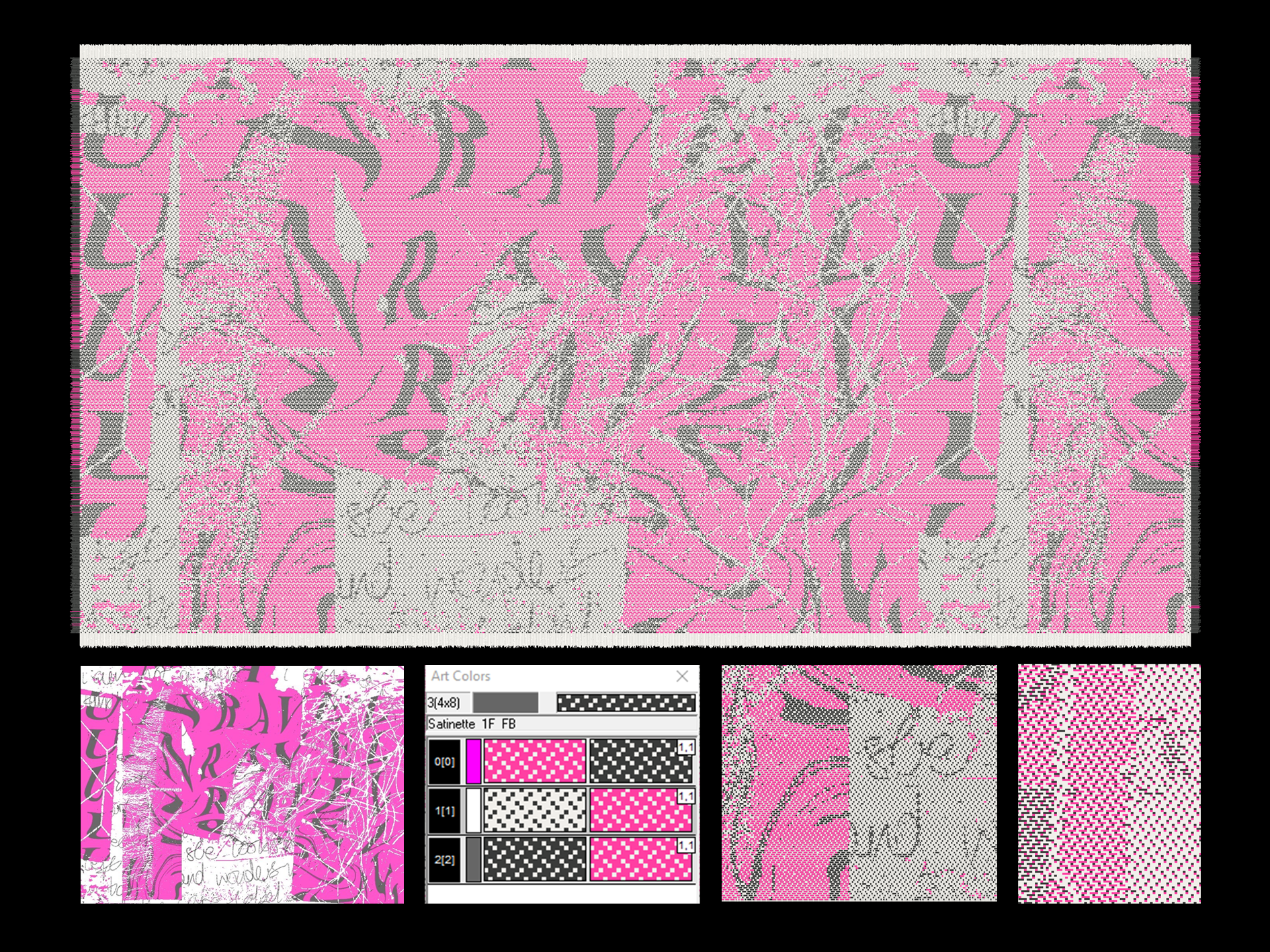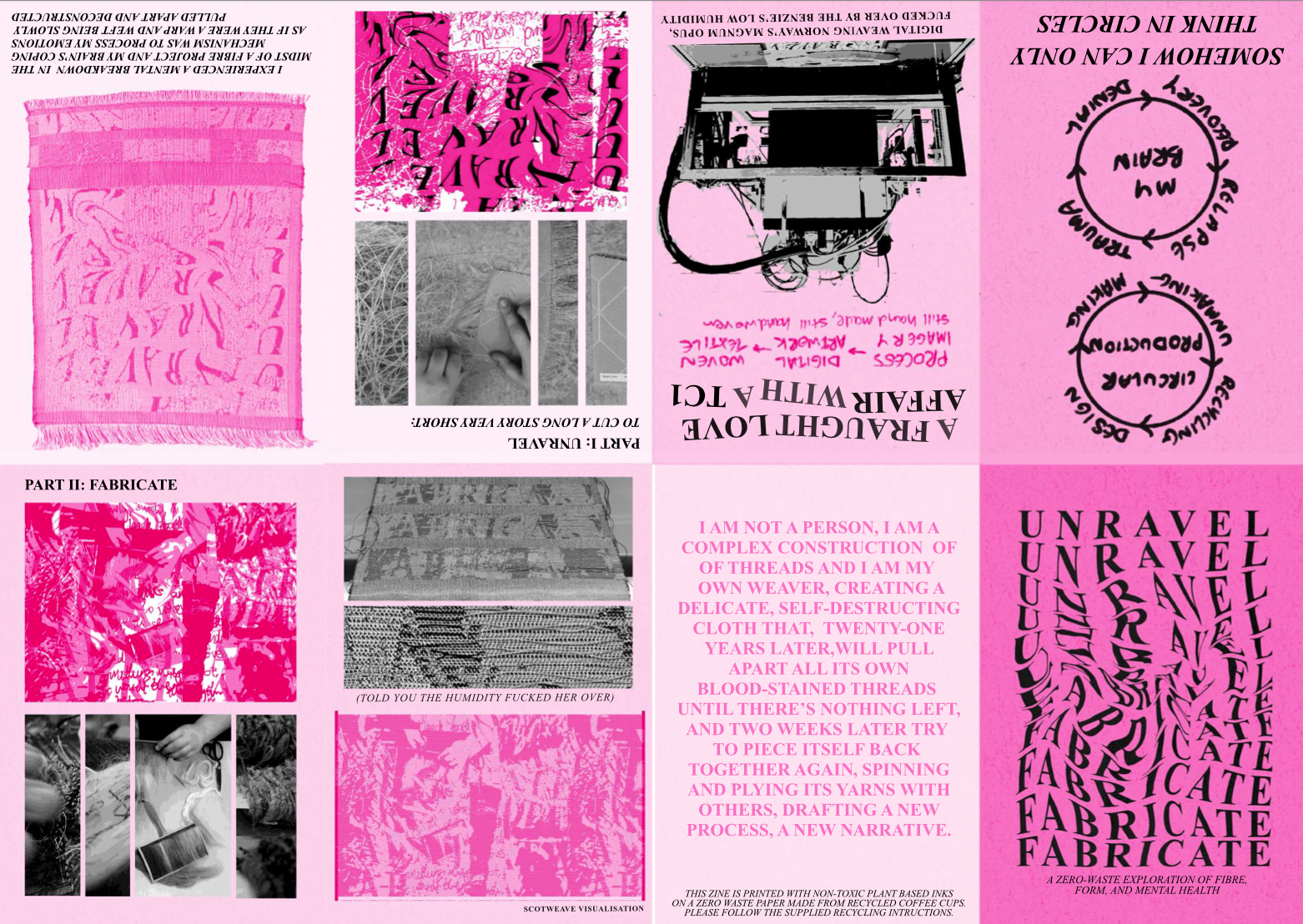 a curation of jacquard, film, and risograph print work exploring connections between trauma and circular making processes. all fiber waste from this project was re-spun into new yarn to use in other projects.